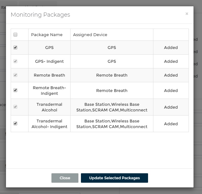 The Device Configuration page is the where you configure Packages, Fees, Replacement costs and Daily Rates that appear whenever you create a Monitoring Event under the Agency in question.